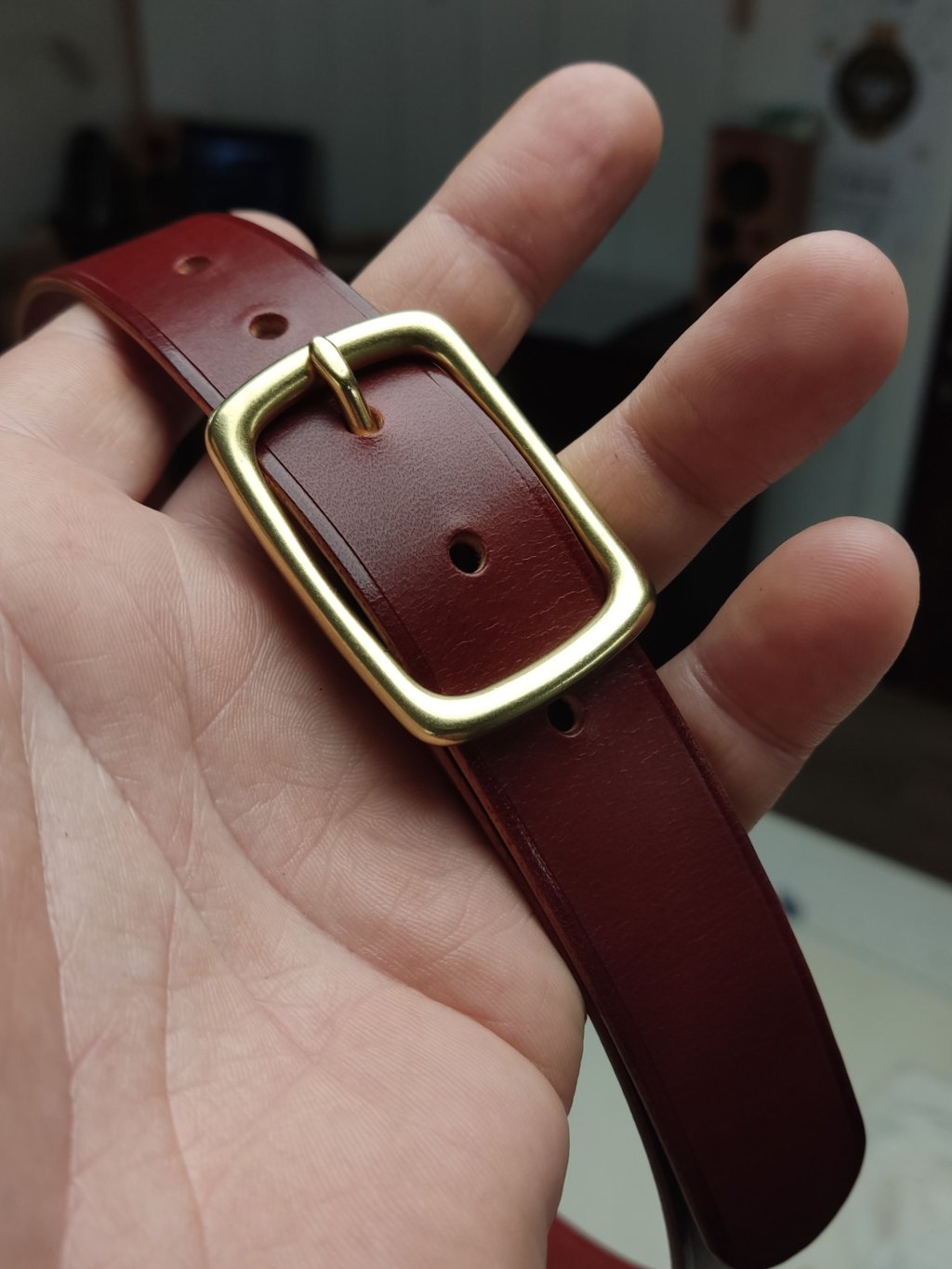 VÝROBA - pás kůže, kudla a dalších milion maličkostí. Načrtnout, vyříznout, vysekat, seříznout, zabrousit, zaleštit, zavoskovat a přišít sponu.